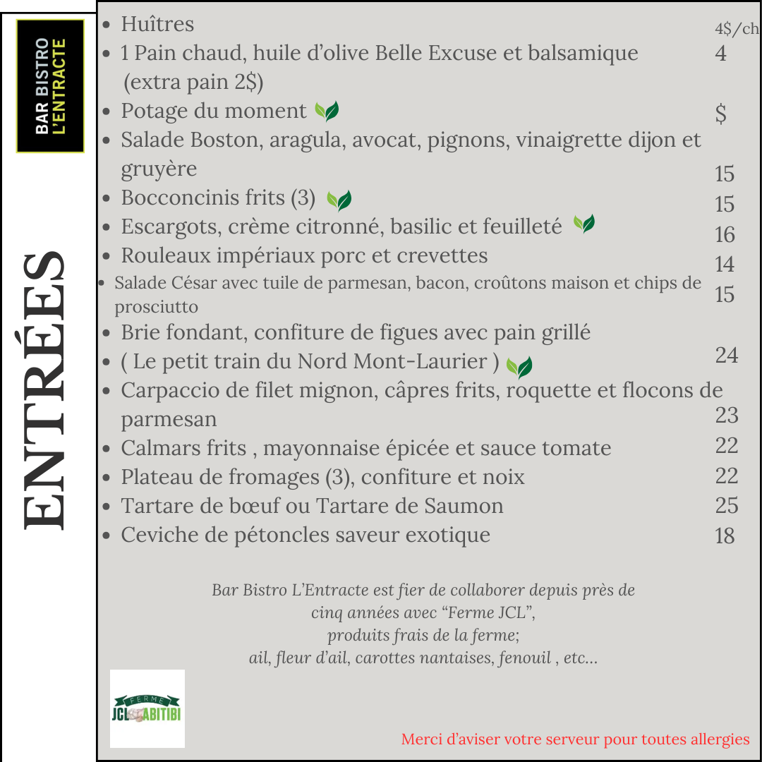 À la carte et Desserts